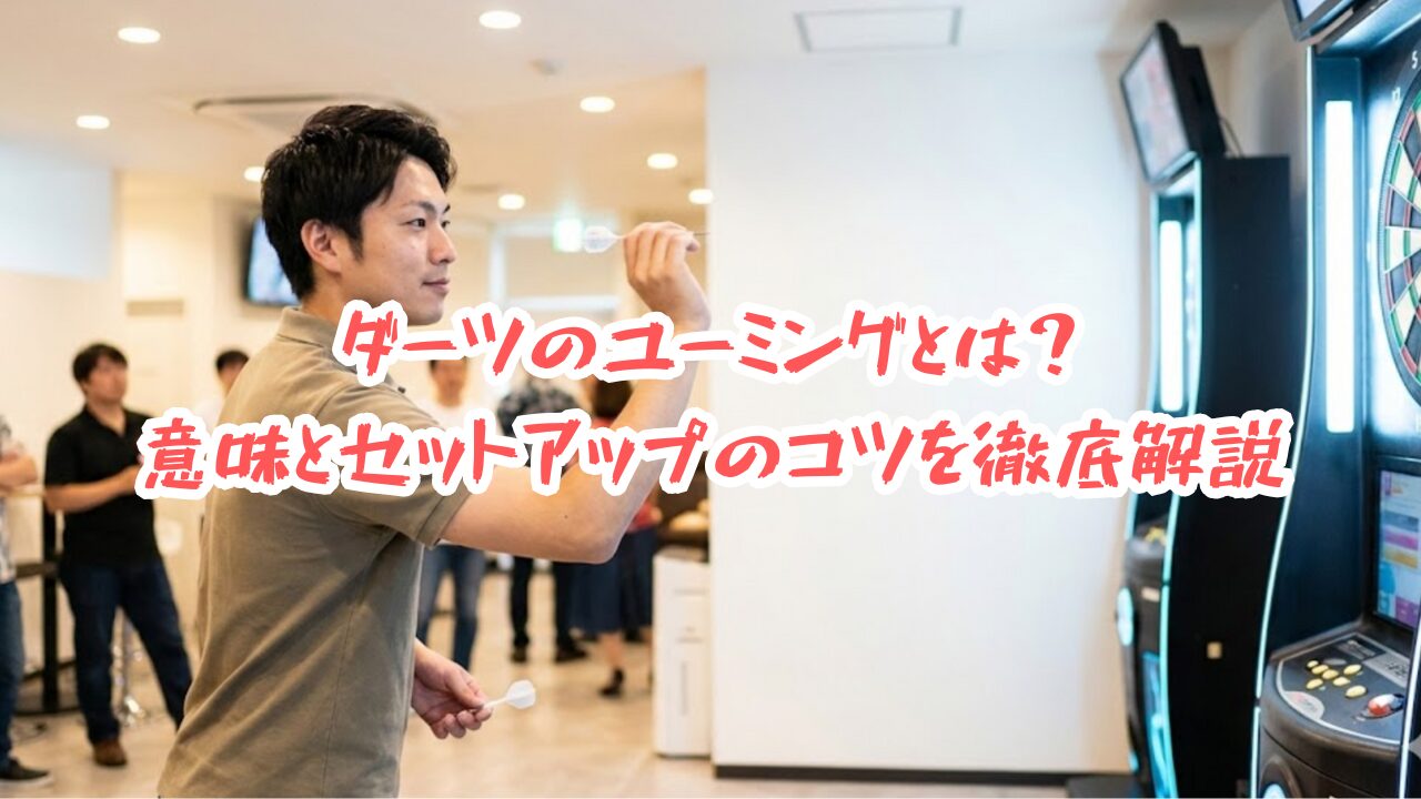 - セットアップ: ダーツを構える動作です。ターゲット(狙う点)、ダーツ、利き目を一直線上に合わせます。