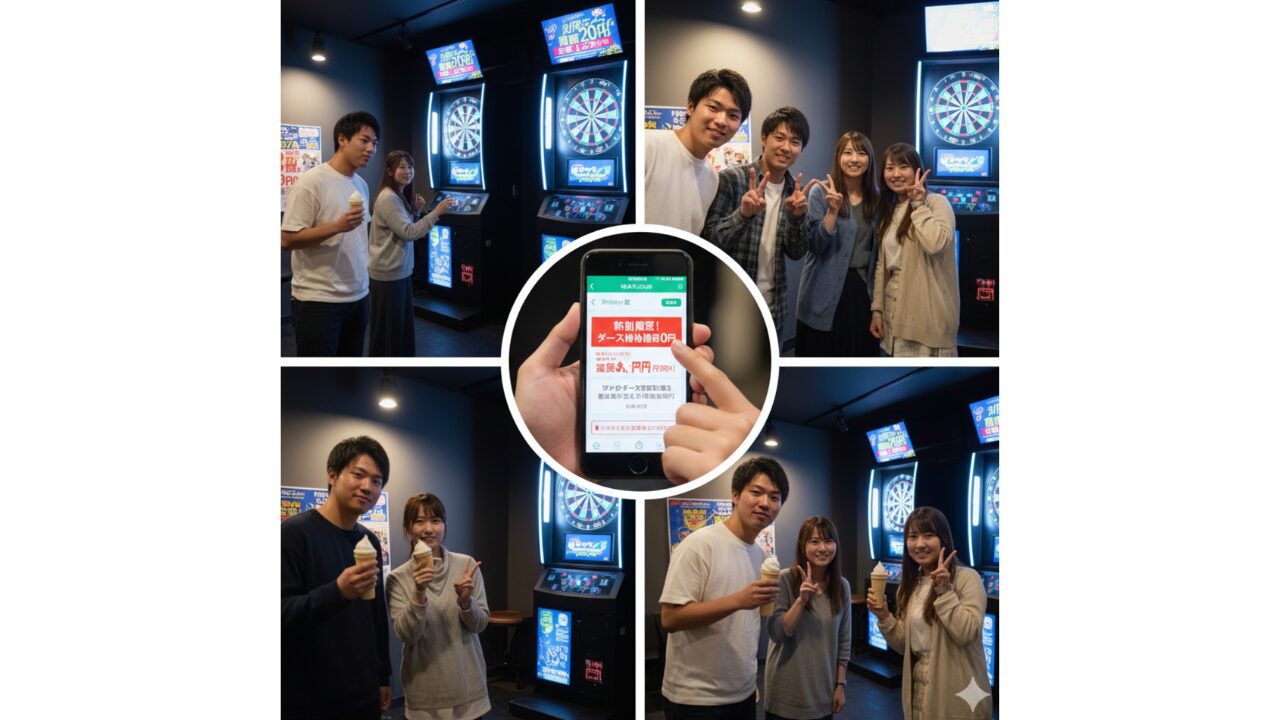Google検索で「地名 + ダーツ 投げ放題 安い」といったキーワードで検索すると、地域の競合店の料金を比較検討できます。特に学生の方は「学割」が適用される店舗も多いため、学生証を忘れずに持参しましょう。